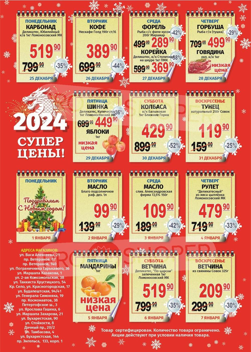с 25 декабря 2023 по 7 января 2024